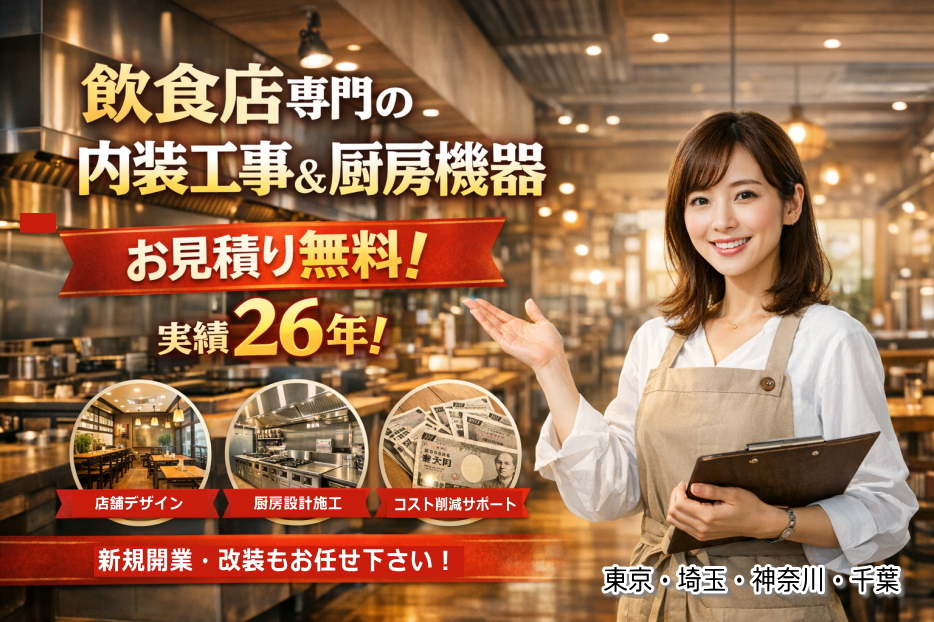飲食の専門家が無料訪問、東京都・埼玉県・神奈川県・千葉県で無料見積しています。